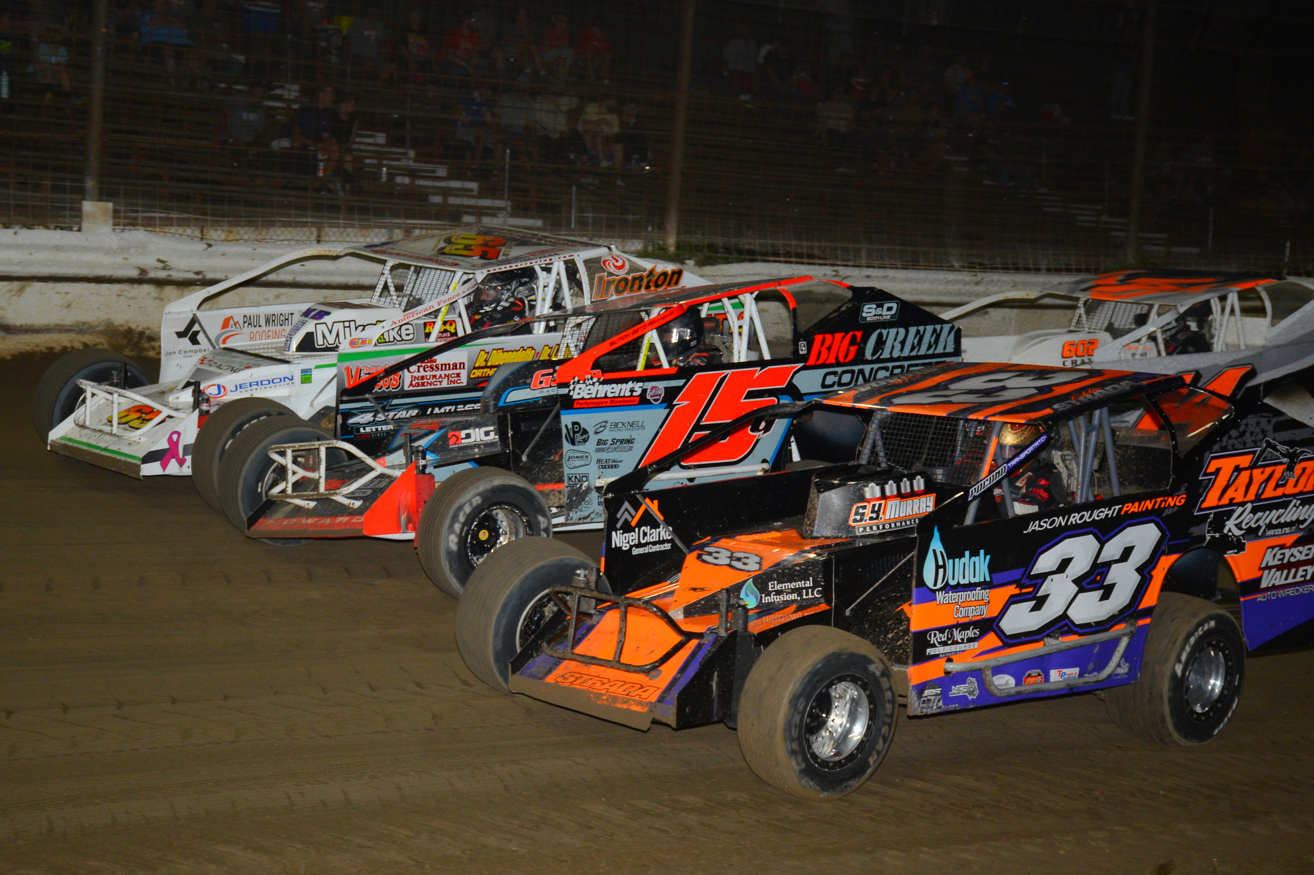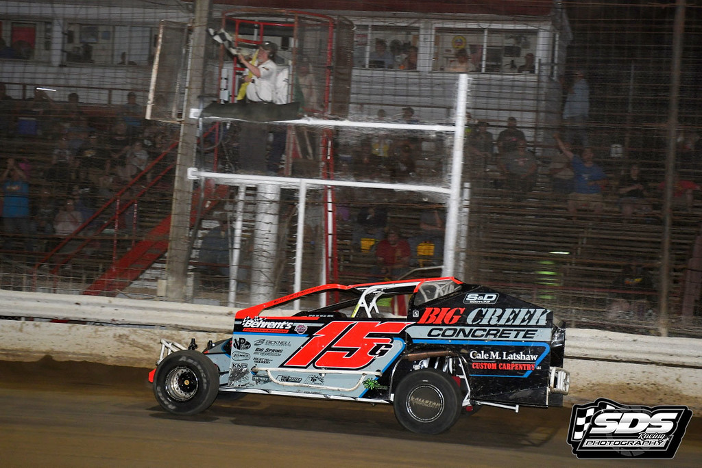 “Started 11th in the feature and was around 7th for four restarts. We got killed starting every one of the restarts on the bottom and just couldn’t get to the dominant lane on the top fast enough but picked our way thru to 4th and was reeling in the top 3 just needed a caution to make anything happen. A great group of drivers in the top 5 and was just happy to be a part of it finishing in 4th. Thank you to the sponsors and especially my crew that worked endless on the car from heat to feature to get it looking somewhat straight again.”