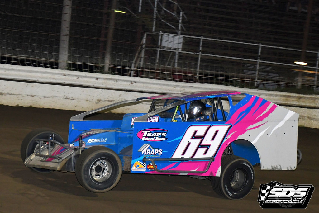 Bobby Trapper Sr finished 6th from his 2nd starting position and posted his best finish in recent years. Bobby Sr. started the season with 3 DNQ’S and then qualified for a feature and finished 19th. Tonight, Bobby stepped forward and led the field for ten laps and fell back to 6th place after a series of restarts but still posted his best finish of the season.