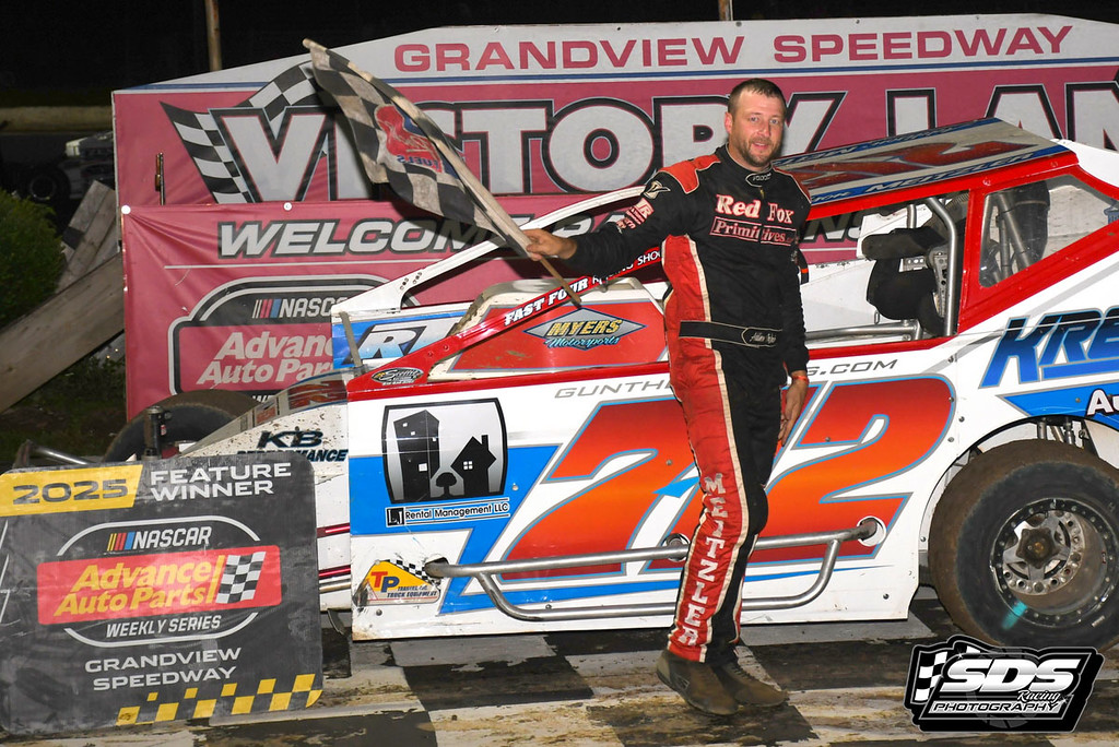 Addison Meitzler worked his way forward from his 8th starting position into 2nd by lap 9 and then into lead over polesitter Brayden Shelton on a lap 16 restart. Second place Colin Cox had one final chance at the leader on a lap 22 restart, but the crafty veteran Meitzler drove into victory lane to post his second consecutive win at Grandview.