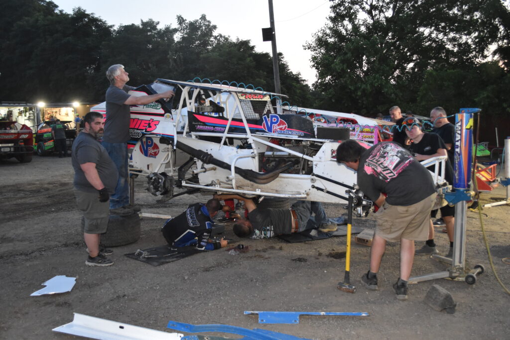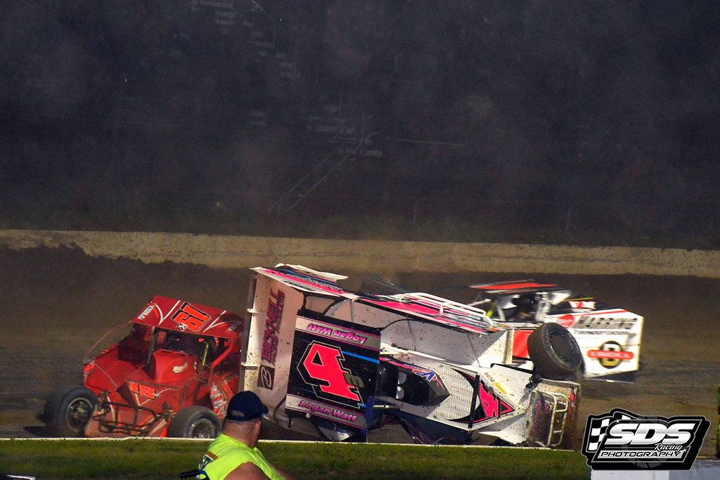 Logan was involved in a red flag multi-car tangle during his heat race but managed to get back out in the heat and make the invert for the feature. Logan’s team made repairs for the feature, but on lap 21 Logan was again involved in a hard contact incident that put the 4M over and ended his night. Logan was fine and the car will be ready next week with a new front axle, some bodywork and some small frame repairs.”
