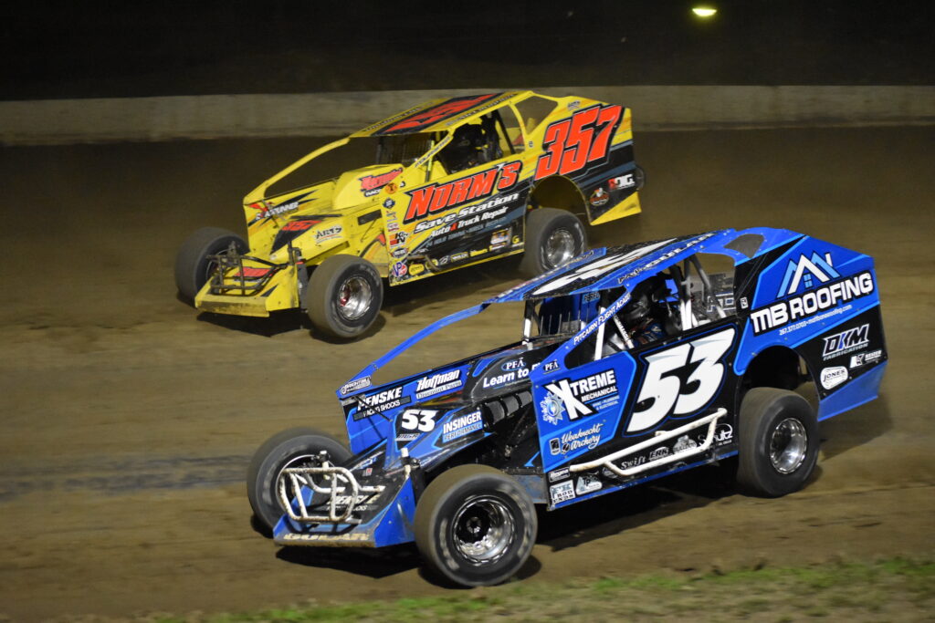 Heat race winners for the 35-car field were Eric Kormann, Jon Kellner and Ron Haring,