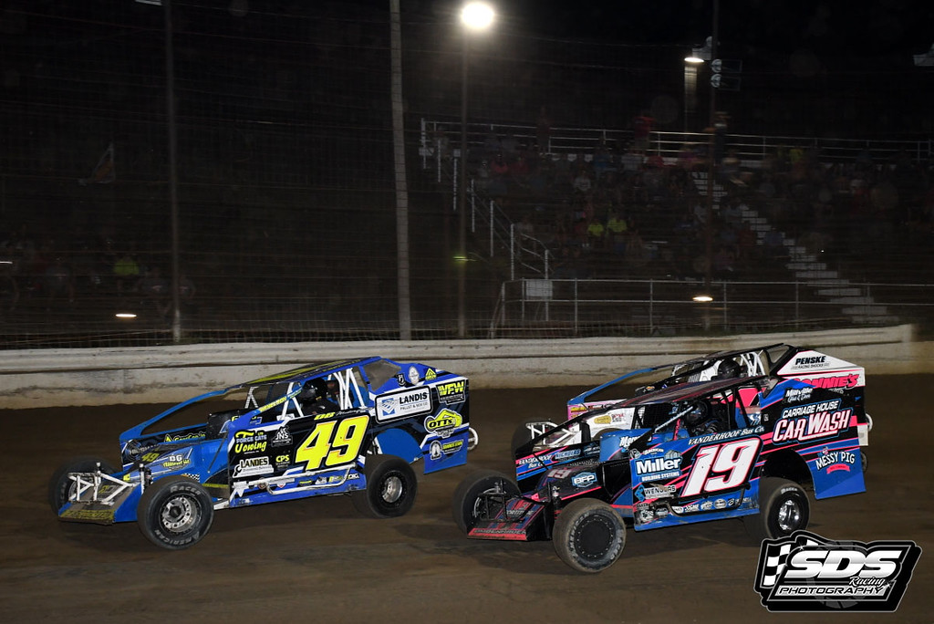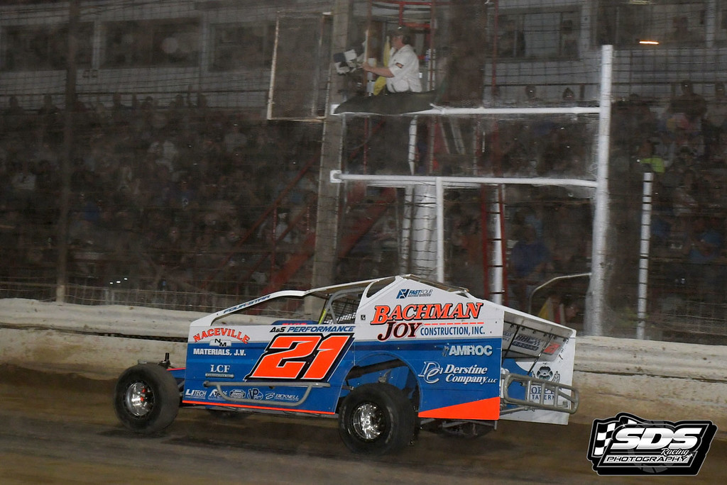 The 30-lap feature saw Ron Haring Jr. charge into the lead and dominate the field for 21 laps until a caution bunched the field for the only restart. On the restart, it was Jon Kellner pulling into the lead and holding off Jeff Strunk in 2nd place.