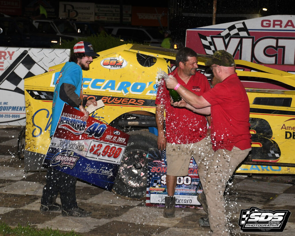 Joey Vaccaro led all 40 laps of the Firecracker 40 to post a career first sportsman win. Joey faced challenges from Ryan Graver, Addison Meitzler and Colin Cox but prevailed for his career first trip to the sportsman victory lane at Grandview.