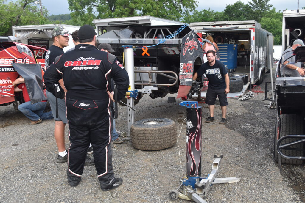 Back at the trailer Ryan noted “I have been in the Bicknell this season at Grandview. We have struggled with rainy, wet and inconsistent track conditions early this season and I have also been experimenting with suspension setups on my car that we can use on Logan’s car. We have also had our share of bad luck getting caught up in some wrecks early in the season and I sat out the feature one week because we had unsafe break issues after damage.”