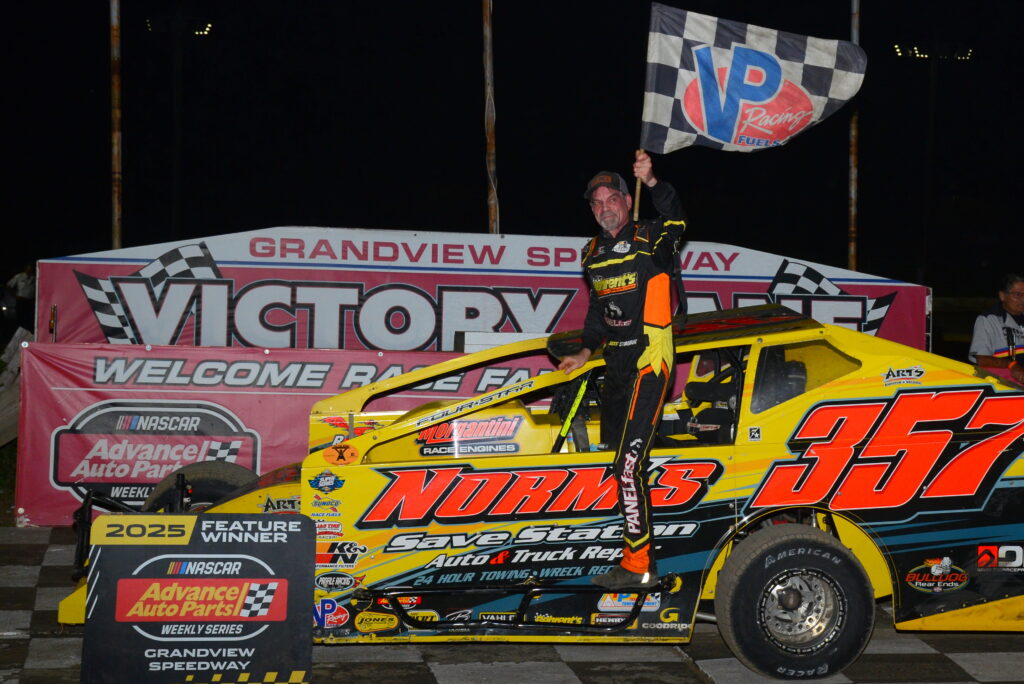 Jeff Strunk posted his second Grandview win of the season coming from his 10th starting position to 5th on lap 6 and moved up one position each lap until taking the lead on lap 10. Jeff held off Jon Kellner for the next 20 laps to take his 2nd Grandview win of the season and be the first modified driver with two Grandview wins this season.