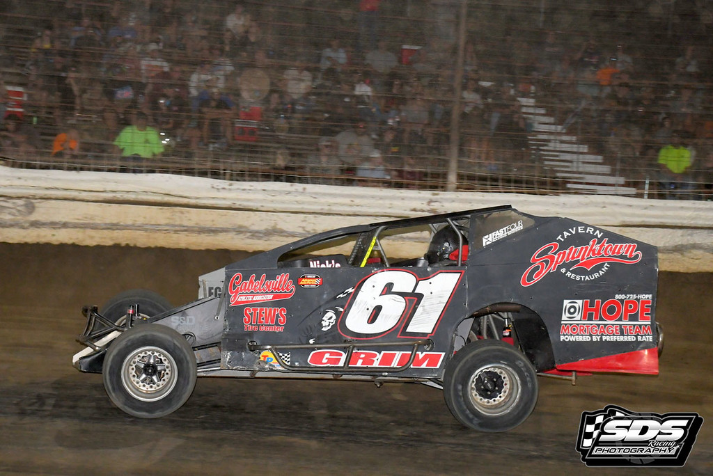 T.P. TRAILER NASCAR MODIFIED FEATURE FINISH (30 laps): 1. JUSTIN GRIM, 2. Eddie Strada, 3. Ron Haring Jr., 4. Cody Manmiller, 5. Mike Gular, 6. Bobby Trapper Jr., 7. Craig Von Dohren, 8. Doug Manmiller, 9. Mike Laise, 10. Ryan Watt, 11. Rick Laubach, 12. Jared Umbenhauer, 13. Brett Kressley, 14. Duane Howard, 15. Logan Watt, 16. Louden Reimert, 17. Kyle Smith, 18. Clay Butler, 19. Brian Hirthler, 20. Ryan Grim, 21. Carroll Hine III, 22. Craig Whitmoyer, 23. Jeff Strunk, 24. Ray Swinehart, 25. Chris Esposito, 26. Jon Kellner, 27. John Willman, 28. Eric Kormann