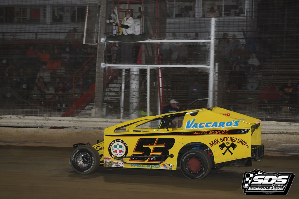 Joey Vaccaro took the lead on lap 1 from his 5th starting spot and drove into victory lane for his 2nd win of the season.