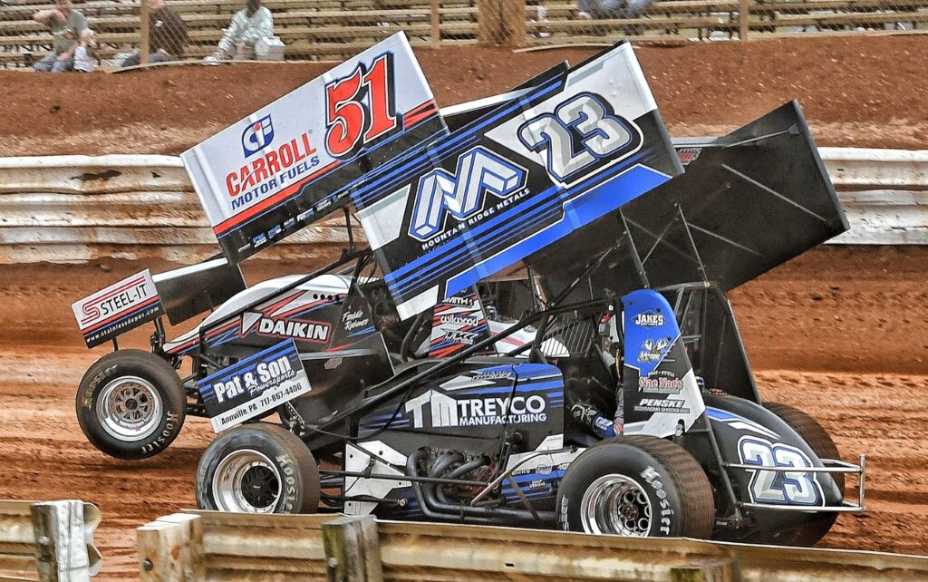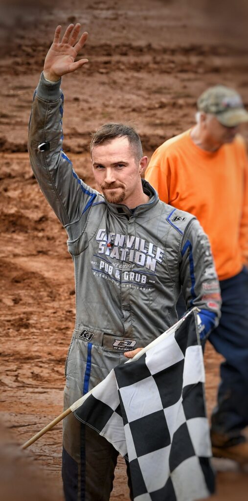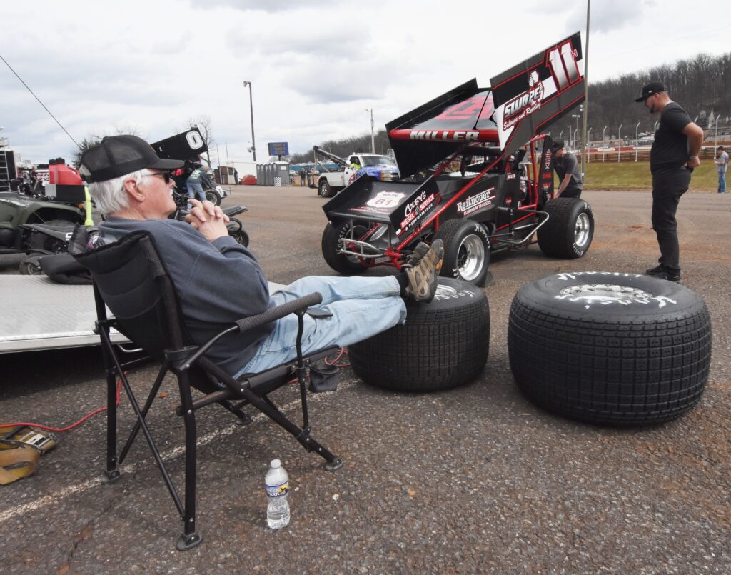 Barry Miller, grandfather of the driver of the #11H Haylen Harbonic, relaxes before the action starts at Lincoln. (Photo Credit: Dennis Bender)The B feature heads into turns #1 & #2 at Lincoln. (Photo Credit: Dennis Bender)Ayden Hare driver of the #8 sprinter straps in for his heat race. (Photo Credit: Dennis Bender)#88 Brandon Rahmer leads #11 T.J. Stutts down the frontstretch during heat race action. (Phot Credit: Dennis Bender)It’s always a show when the #88 of Brandon Rahmer and the #11 T.J. Stutts battle. (Photo Credit: Dennis Bender)Freddie Rahmer checks out the track during intermission. (Photo Credit: Dennis Bender)#39 Anthony Macri gets a bit sideways going thru turns 3 and 4 Sunday at Lincoln. (Photo Credit: Dennis Bender)#23 Chase Dietz goes for the pass on #51 Freddie Rahmer in the feature. Dietz went on to win while Rahmer finished 4th. (Photo Credit: Dennis Bender)Chase Dietz waves to the crowd after his second straight win at Lincoln Speedway to open the season. (Photo Credit: Dennis Bender)