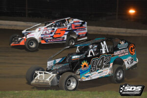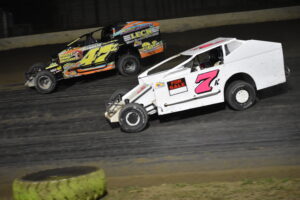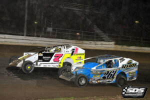 Timmy Buckwalter and Matt Yoder battled side by side until both cars made contact on lap 23 breaking Yoder’s momentum...